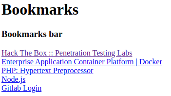 I put gobuster to task to enumerate directories gobuster-old -t 40 -u http://bitlab.htb/ -e -w $DIRECTORY_BIG -s 200 -fw and begun clicking around and reading source pages.