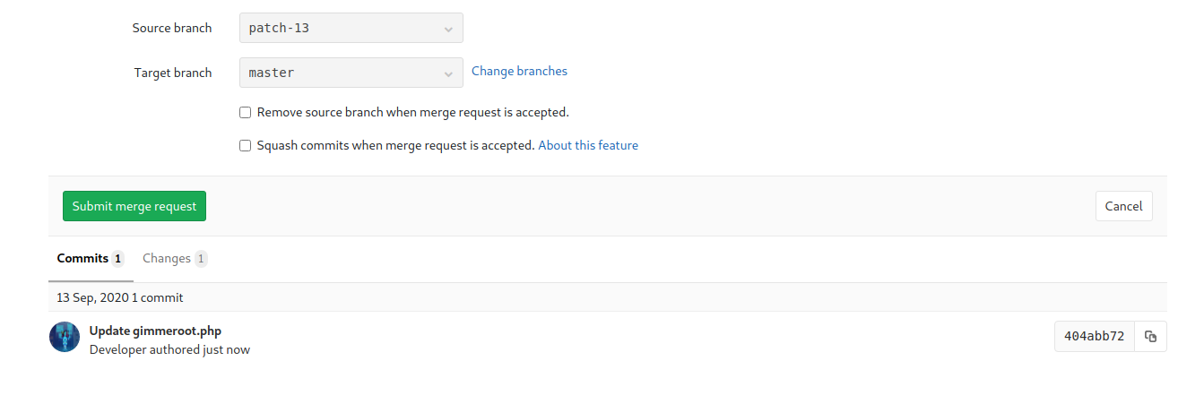 This webpages’s source code is in the repository http://bitlab.htb/root/profile/blob/master/index.php of which we have write access to.