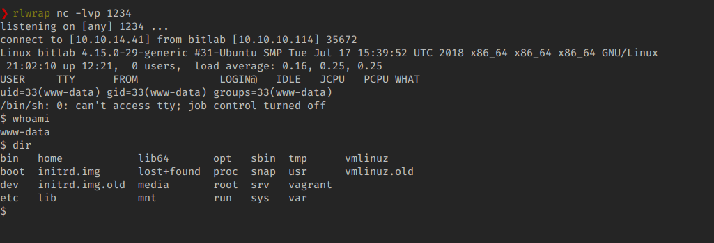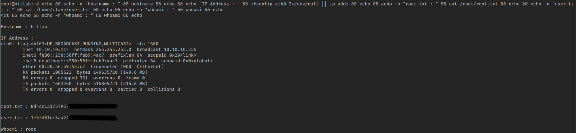 This is my writeup for HackTheBox’s box called Bitlab which is a very good box. This box begins with a running GitLab server. Through enumeration you find credentials to the git server. Following which you get a shell to the box. Modifying a PHP script you get creds to the user and exploiting git you get access to root. Lets get to work.