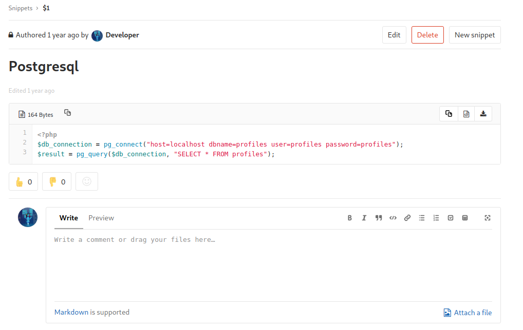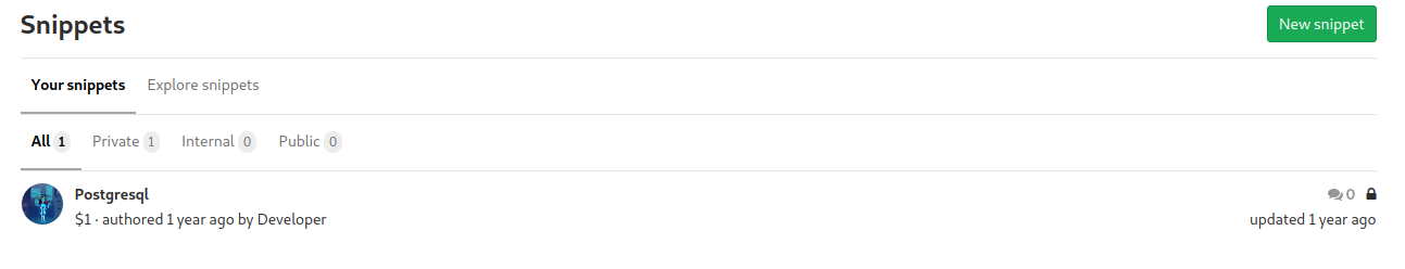 We also have visibility of one snippet : http://bitlab.htb/snippets/1.